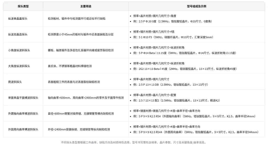 根据工件特性与检测目标,匹配正确的探头类型至关重要。