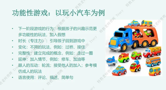 儿童主导: 教学过程应由孩子主导,成人跟随其玩法,通过加入声音、表情和动作来丰富体验,并引导其向更高阶的游戏迈进。