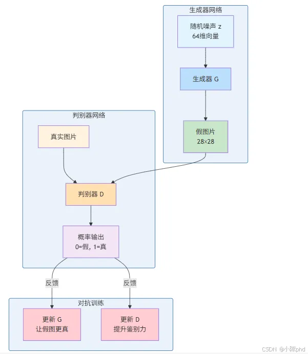 这就是GAN的核心思想——通过对抗训练,让生成器学会生成逼真的数据。
