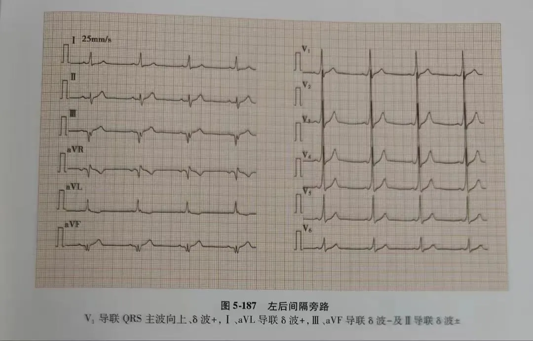 室间隔为左心室的一部分。后间隔旁路激动室间隔的顺序是,从左往右,从后向前。V1的δ波为正向。