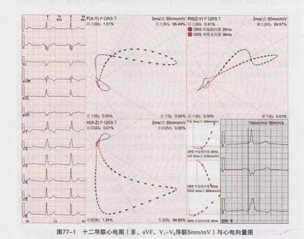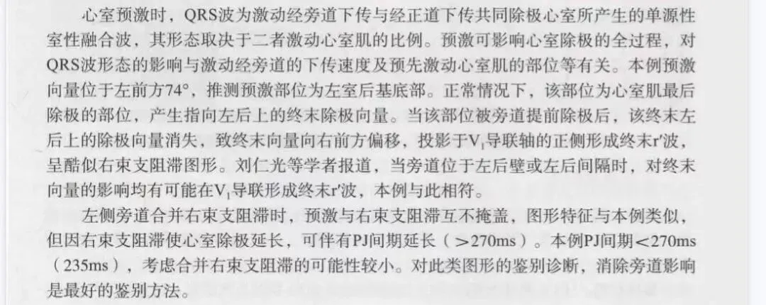 本图摘自《临床心电图分析与诊断第2版》。V1主波正向,A型心室预激。