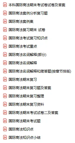 今天分享的资料是「编号-0132-国际商法」学习笔记+知识点总结+期末考试重点+复习资料+习题集及答案+名词解释+历年真题试卷及答案+题库及答案+复习重点+思考题及参考答案+公式总结+考试重点基础题+知识总结+高清PDF可打印+免费分享!注:本资源搜集于网络,仅供学习交流,严禁用于商业用途!