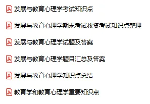 今天分享的资料是「编号-0134-发展与教育心理学」学习笔记+知识点总结+期末考试重点+复习资料+习题集及答案+名词解释+历年真题试卷及答案+题库及答案+复习重点+思考题及参考答案+公式总结+考试重点基础题+知识总结+高清PDF可打印+免费分享!注:本资源搜集于网络,仅供学习交流,严禁用于商业用途!