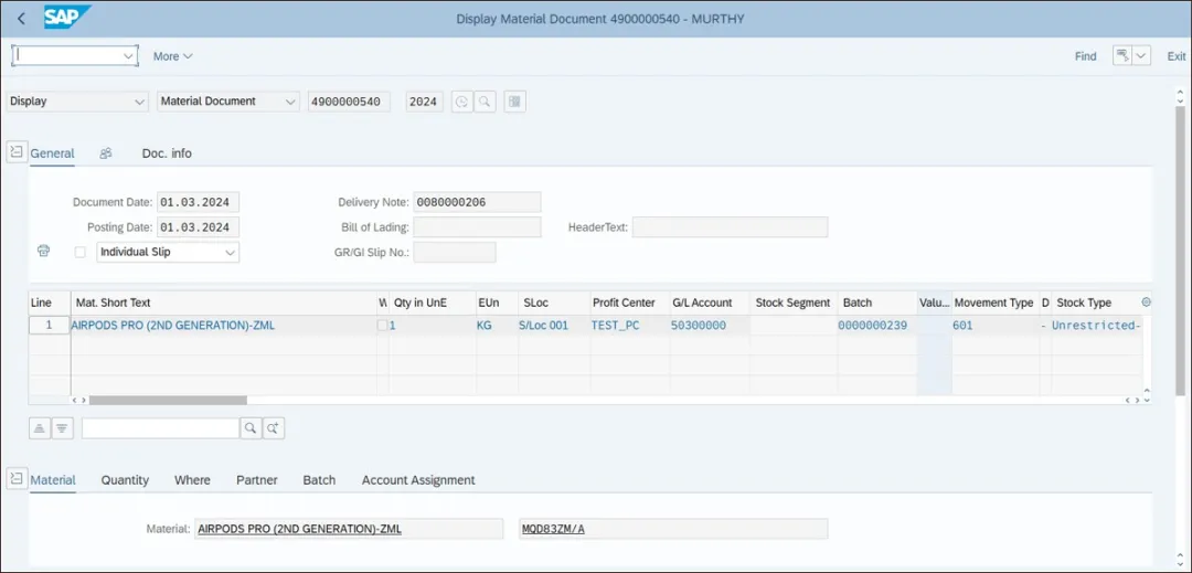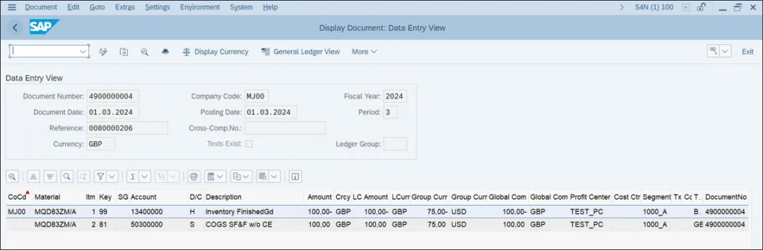 在 SAP S/4HANA 中有两个重要的凭证用于记录库存管理中货物移动的详细信息:SAP S/4HANA 使用物料凭证记录库存管理中的每一次物料移动。它记录物料移动交易的详细信息,如过账日期、物料编号、物料数量、移动类型、批次信息、工厂和存储地点,以及进行货物移动过账的用户。下图显示了在为出库发货进行货物发放过账后系统中创建的物料凭证。物料凭证将根据系统中为物料凭证定义的编号范围分配一个唯一的编号。它们记录过账日期和参考文档信息(采购订单、出库发货单等)。移动类型在确定物料移动的类型(如收货、发货或转移过账)方面起着重要作用。它们记录物料移动的信息,包括发货地点和客户详细信息。如果物料按批次管理且为物料分配了序列号配置文件,它们会记录批次详细信息和序列号信息。它们记录发货地点(工厂和存储地点)和收货地点(如果货物移动发生在库存管理内部,即从一个存储地点转移到另一个存储地点,则记录工厂和存储地点)。如果特定的货物移动涉及财务会计中的价值更新,物料凭证将与会计凭证关联。SAP S/4HANA 在会计凭证中记录库存管理中涉及财务交易的每一次物料移动。它记录与货物移动相关的财务交易的详细信息,并与相应的物料凭证关联。自动账户确定配置在货物发放、收货或某些转移过账的会计凭证过账中起着至关重要的作用。同一工厂内存储地点之间的货物移动不会创建会计凭证。下图显示了在为出库发货进行货物发放过账后系统自动创建的会计凭证。你若喜欢,点个❤️谢先👇
