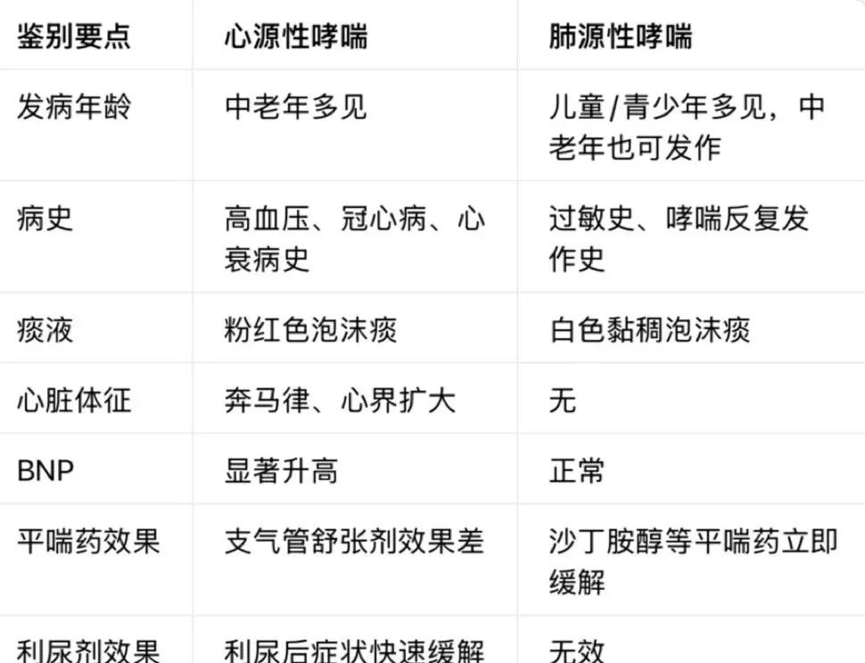 1. 临床思维核心:喘息患者先查BNP、心脏超声,鉴别心源性与肺源性,再用药,杜绝盲目使用支气管舒张剂