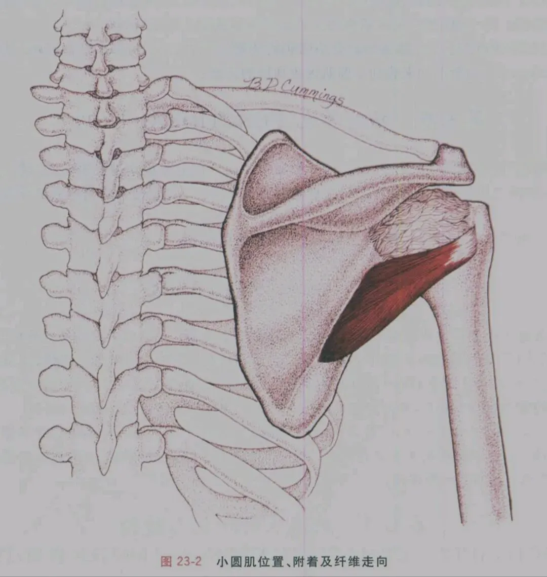 一份 4 名患者的病例报告说明,小圆肌活化激痛点传导到第四、五指的触物感痛引起的刺痛和麻木可能与传导到肩部的疼痛同样常见。