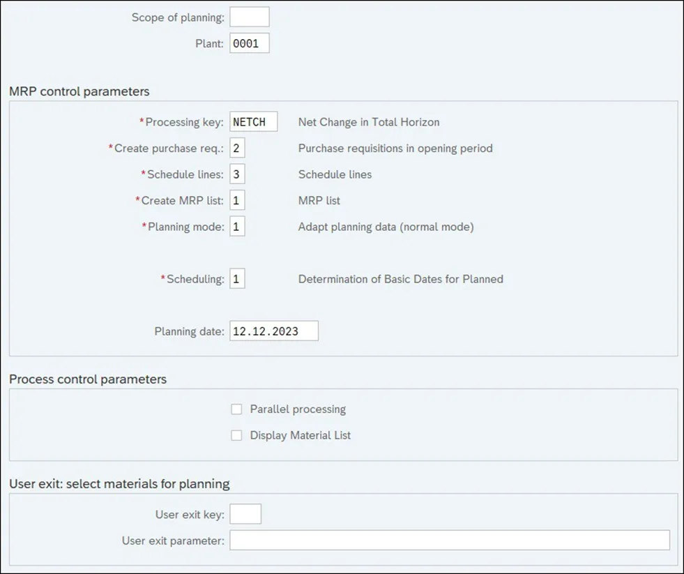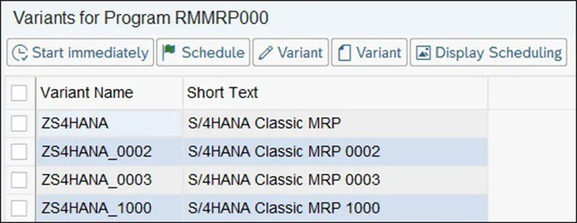 事务码MD02\MD03\MD43\MD50\MD51对于单独计划材料非常有用,但它们主要用于特殊情况。例如,如果知道为物料创建了一个新的销售订单,并且需要立即计划此物料以开始组件的采购,则可以运行单物料多级MRP计划运行。但是,通常不会每天单独计划所有材料。大多数公司计划在后台执行定期的总计划MRP运行,通常是在夜间执行。在总计划运行中,可以使用计划范围计划整个工厂或计划多个工厂和MRP区域。根据为计划运行选择的处理参数,物料需求计划只能计划自上次计划运行以来发生更改的物料或具有有效物料需求计划类型的所有物料。计划范围定义了在MRP总计划运行期间应计划的工厂或MRP区域序列。计划范围必须在后台配置事务码 OM0E 中创建。如果要手动触发总计划运行,可以直接在事务码MD01中执行。在下图所示的选择屏幕中,输入一个工厂或所需的计划范围。除了MRP 控制参数和过程控制参数外,还有一个被称作为Parallel Processing 并行处理的附加标志。选中此标志后,MRP将尝试将计划运行拆分为小包,并将其分发到配置中定义的不同服务器之间。请记住,并行处理可以提高MRP性能,并且在计划范围计划时必须使用它。总计划运行通常会根据计划文件条目选择工厂下的所有物料或选定的计划范围进行计划。但是,在某些情况下,希望限制选定物料组的计划,例如,特定物料需求计划控制者或特定物料需求计划组。在标准传统MRP中,无法选择一小组物料进行计划,但SAP提供了一个用户出口,可以通过该出口实现自己的逻辑来选择要在总计划运行中计划的物料。在这种情况下,用户退出键和用户退出参数字段用于确定将使用哪个逻辑,并且在此退出中实现自定义代码的输入参数。在开始使用这些字段之前,需要在自定义出口事务码OMIX中创建用户出口键,并创建自己的增强M61X0001来实现。增强M61X0001有两个不同的组成部分。在没有并行处理的情况下执行MRP时应使用组件EXIT_SAPMM61X_001,使用并行处理时应使用EXIT_SAPLM61C_001。SAP 提供了 EXIT_SAPMM61X_001 的示例代码,可用作自定义开发的起点。尽管 SAP为整个计划运行提供了事务码MD01,但它并不经常使用。全面计划运行可能需要很长时间,并且通常计划在夜间在后台执行。SAP提供标准事务码MDBT,允许最终用户在后台安排定期MRP执行,而无需依赖系统管理员。在事务码MDBT中,先创建变式,在其中输入应在总计划运行中使用的所有MRP控制和流程参数。然后,可以选择计划变式是立即执行或定期执行。下图显示了创建的变式以及在事务码 MDBT 中安排 MRP 运行的选项。或者,可以通过手动创建用于事务SM36中的程序RMMRP000的后台作业来安排定期MRP执行。当需要在 MRP之前或之后运行其他程序(例如,计划订单或采购申请的转换)时,通常使用这种方式。事务码SM37可以显示当前计划且已完成的后台作业。可以检查MRP运行过程中的运行状态和MRP统计信息。你若喜欢,点个❤️谢先👇