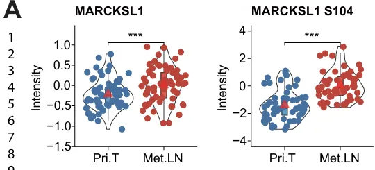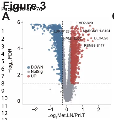 Pri.Ts 与 Met.LNs 之间的磷酸化位点和磷酸化蛋白系统性的差异分析(图3A)
