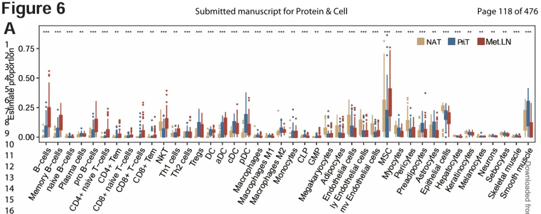 xCell 方法评估免疫细胞浸润水平(图 6A)