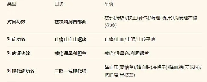 (1)初级功效(对症状):动词+疾病名(如已心痛、截疟)