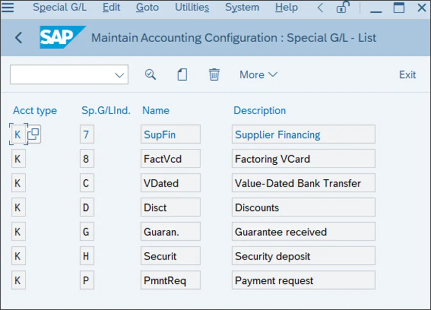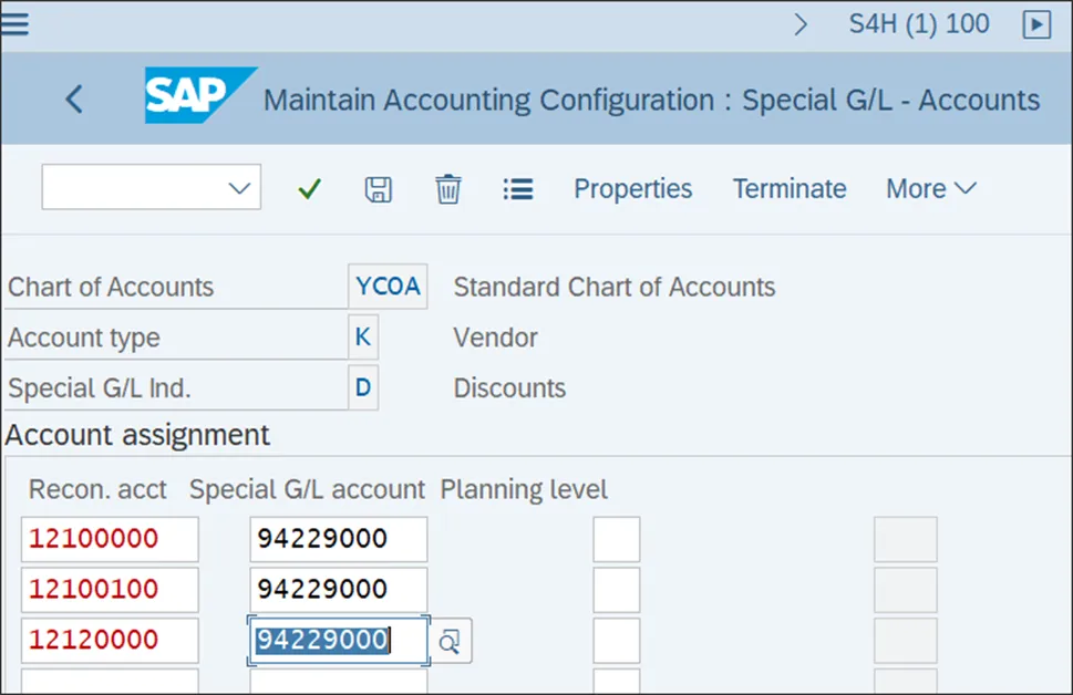在业务伙伴主记录中,当维护公司代码的财务会计供应商数据时,您会指定一个统驭账户,该账户是每次向供应商账户过账时自动过账的总账账户。这只是一个您可以在主记录中指定的账户——但有时,出于各种业务情况,您可能需要过账到另一个账户。这种灵活性是必要的,因为从会计角度来看,某些交易——如折扣、担保或付款请求的过账——必须过账到特定账户。因此,SAP 提供了过账到替代统驭账户的功能。在这个过程中,会使用特殊总账标识。这个标识可以在文档中输入,它会将供应商主记录中的总账统驭账户替换为为这个特殊总账标识配置的另一个替代总账账户。让我们来逐步了解设置和配置特殊总账标识的过程。要定义替代统驭账户,请遵循菜单路径:财务会计 • 应收账款和应付账款 • 商业交易 • 使用替代统驭账户过账 • 其他特殊总账交易 • 为供应商定义替代统驭账户。如下图所示,您会看到 SAP S/4HANA 提供的预定义特殊总账标识列表。您也可以创建新的标识以满足您的特定需求。双击用于过账折扣的标识 D。在这个屏幕上,对于“统驭账户”列中定义的每个账户(这些账户用于供应商主记录),您可以在“特殊总账账户”列中定义一个替代账户。然后,当使用与该统驭账户关联的供应商的特殊总账标识进行过账时,系统会自动将过账重新路由到替代统驭账户。你若喜欢,点个❤️谢先👇