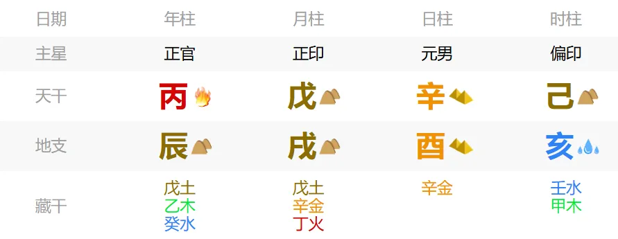 这个八字辰戌冲、酉戌穿,亥水也帮酉金降温,全局都在制戌土,己土的印已经不旺了,所以命主官职不大。