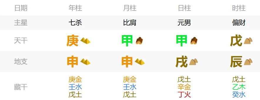 命主为什么在股分制公司?因为天干的庚金印先生年柱的比劫,比劫和命主都是从坐下的辰库出来,这个象就是股份制公司。