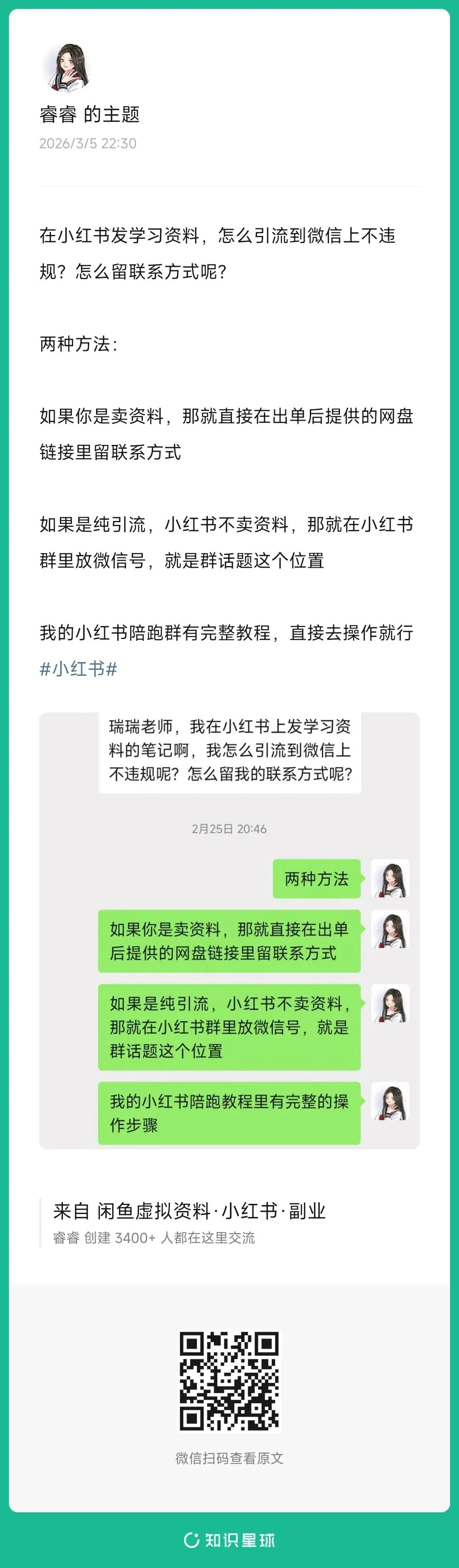 >在小红书发学习资料,怎么引流到微信上不违规?怎么留联系方式呢?