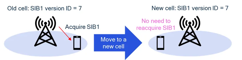 在5G网络中,空闲的UE会获取SIB1以获取关键的驻留和接入信息。R19版本引入了按需SIB1传输机制,以提升网络效率 (NES) 并降低开销。然而SIB1的内容通常保持静态,不仅随时间推移保持不变,而且在不同的小区之间也保持不变。当空闲的UE移动到新的小区时,其对应的SIB1很可能包含与前一个小区相同的接入信息。尤其是在UE位于新小区边缘时,它可能需要多次尝试解码SIB1,而SIB1的有效载荷通常较大。这会影响SIB1获取的能量消耗和延迟。避免不必要的SIB1获取的一种方法是引入SIB1 version ID,该ID可以在MIB或SIB1调度PDCCH中广播。例如,如下图所示的小区间的SIB1 version ID,空闲的UE首先从旧小区获取version ID为7的SIB1,然后移动到新小区。如果新小区的MIB指示的SIB1版本ID也为7,则UE可能不需要重新获取SIB1,从而节省能量和相应的开销。