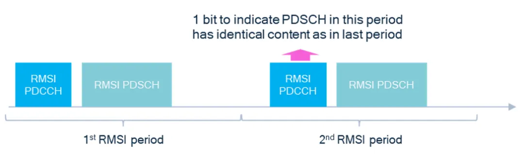 提高广播PDSCH覆盖率的一种方法是向UE指示更多的时空合并机会。例如,SIB1通常不会在各个SIB1周期内发生变化,如果UE知道这一点,就可以跨周期合并SIB1 PDSCH。如下图所示的SIB1 PDCCH表示当前周期和上个周期的PDSCH含量相同,SIB1 PDCCH中的1位可以指示当前SIB1周期内的SIB1 PDSCH内容与上一个周期相同。这将为UE提供更多的合并机会,这对于6G尤其有利,因为6G中SIB1的时间段可能更稀疏,以用于NES。