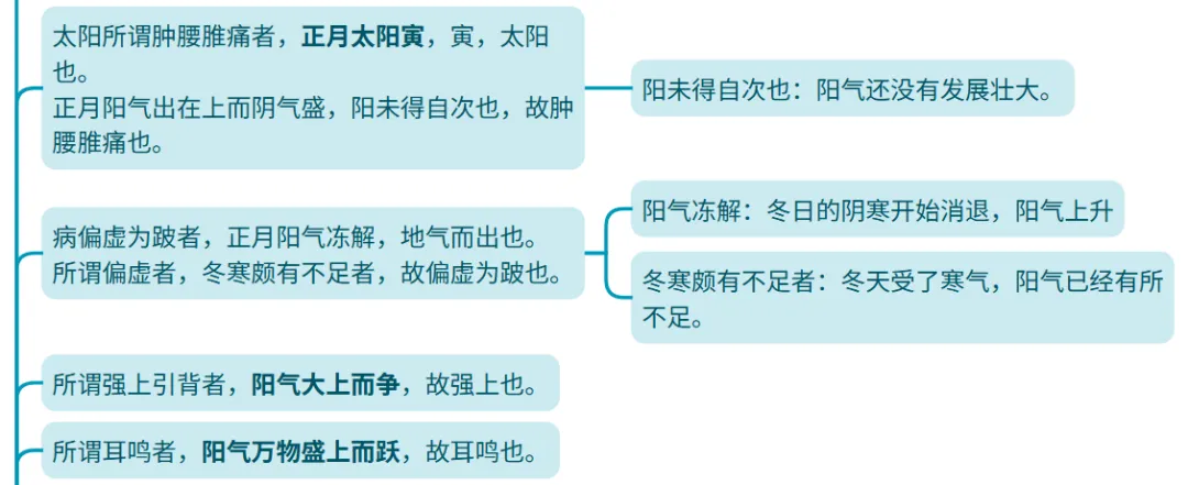 肿腰脽痛:正月阳气欲升而被阴邪阻滞,腰臀为太阳所过,气滞水停。