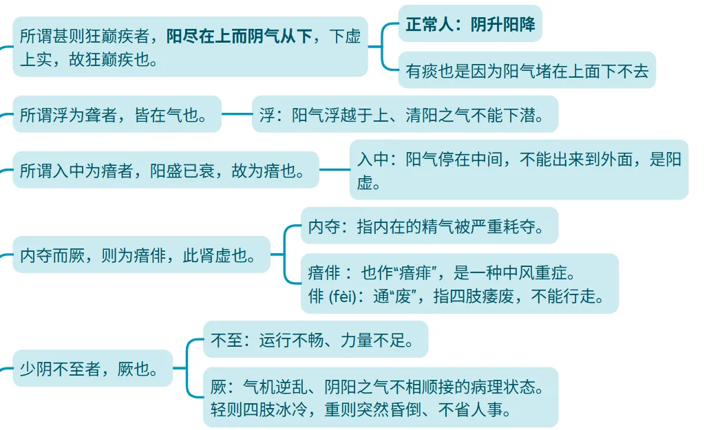 狂、癫疾:阳气尽在上,下虚上实,阴阳逆乱。