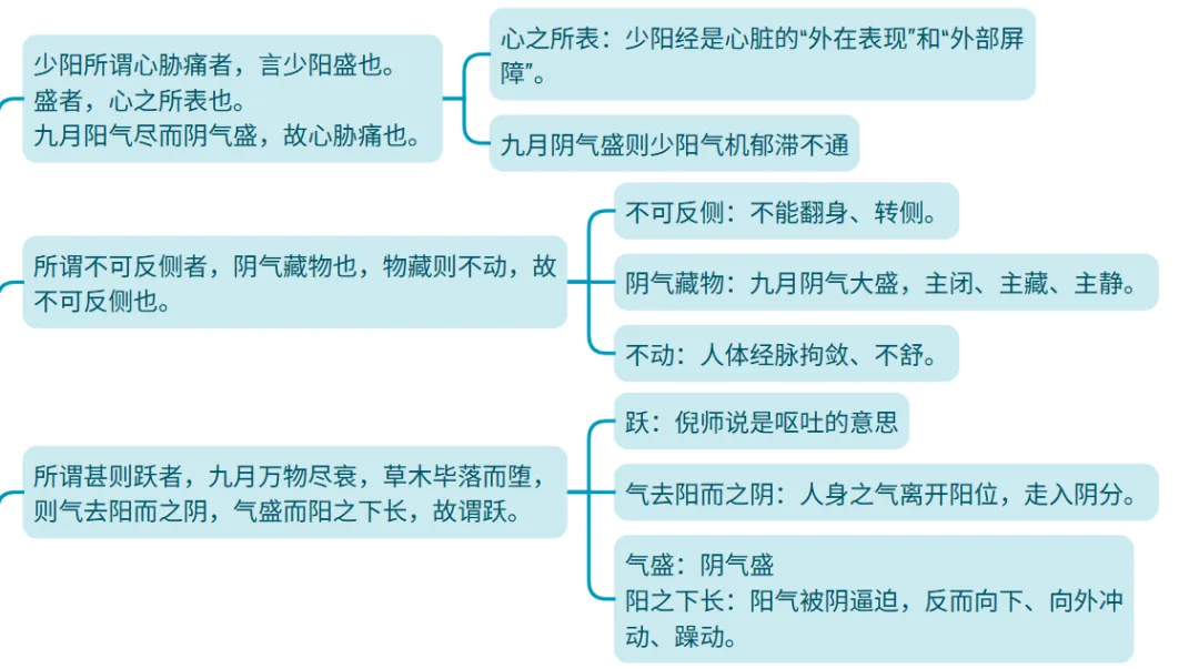 心胁痛:少阳散络心包,九月阴盛,邪循经犯心胁。