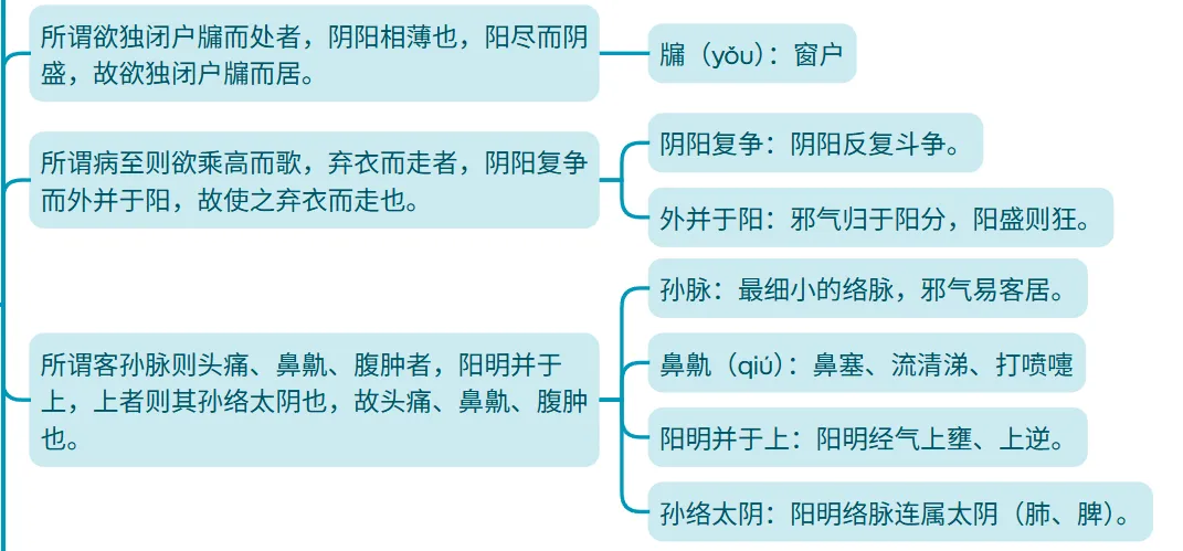 狂歌、弃衣走:阴阳相争、外并于阳,阳热亢极。