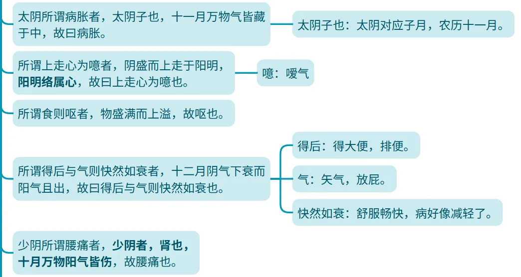 上走心为噫(嗳气):阴盛上走阳明,阳明络心,气逆为噫。