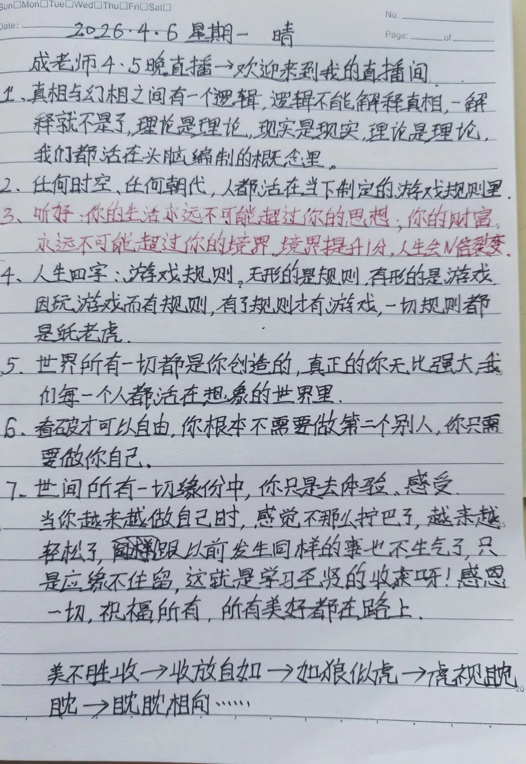 3,听好:你的生活永远不可能超过你的思想,你的财富永远不可能超过你的境界,境界提升1分,人生会倍裂变。