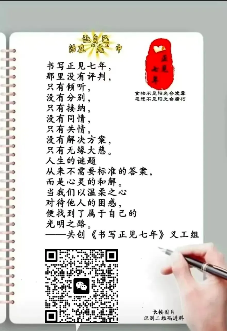 欢迎留下您的精彩评论或扫码加人我们一起书写正见七年,践行日记终身吧!