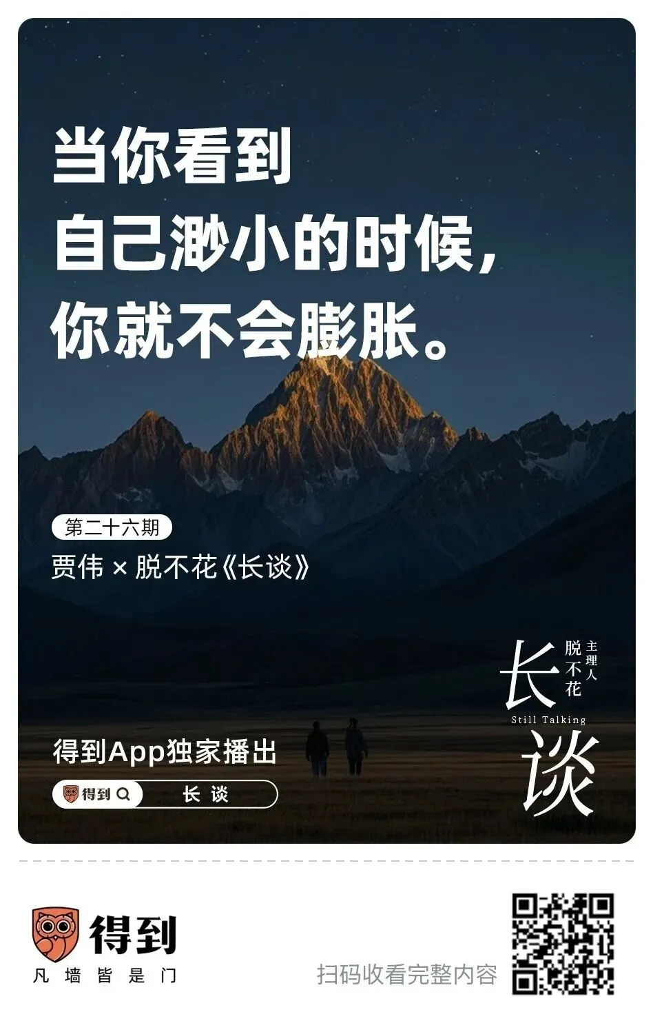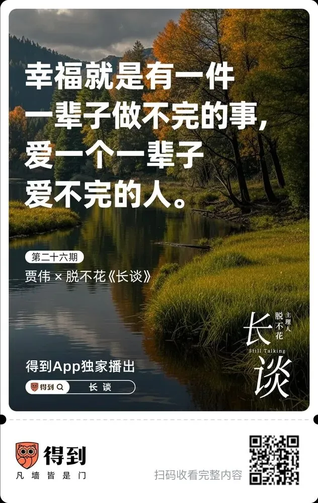 清明假期终于观看了脱不花与贾伟的这场长谈,没有华丽道理,只有一个人从巅峰摔落,再一点点把自己捡起来的真实心路。