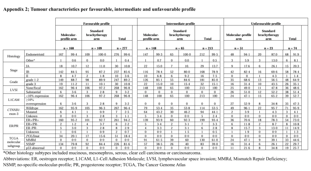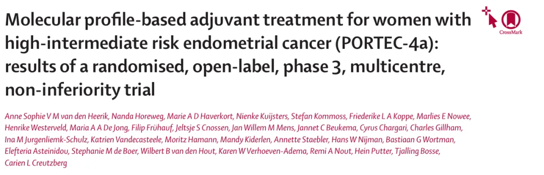 在此背景下,2026 年1月发表于The Lancet Oncology的Ⅲ期随机、多中心非劣效性研究 “Molecular profile-based adjuvant treatment for women with high-intermediate risk endometrial cancer (PORTEC‑4a)”,首次验证了基于分子整合风险分层的辅助治疗策略,在保证局部控制不劣效的同时,有效减少过度治疗,为分子分型指导临床决策提供了关键循证依据。