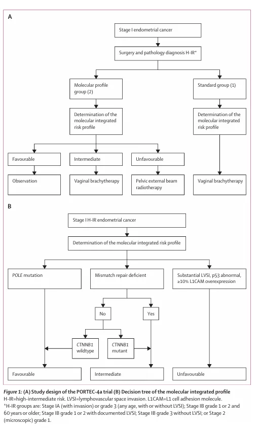 PORTEC‑4a 是一项在欧洲多国开展的随机、开放标签、Ⅲ期临床试验,比较基于分子整合风险分层的个体化辅助治疗与标准阴道近距离放疗在高‑中危子宫内膜癌患者中的疗效与安全性。