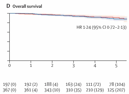 4. 5 年总生存率(OS):分子分型组 88.0% vs 标准组 90.9%,HR=1.24