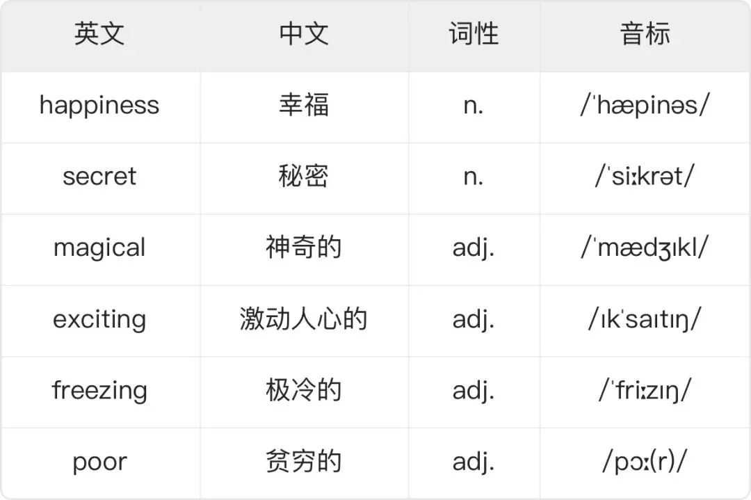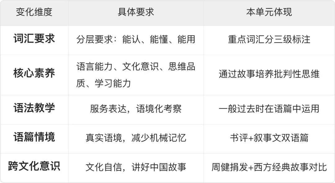 • ✅ 语言能力:运用一般过去时讲述故事,使用本单元词汇谈论幸福