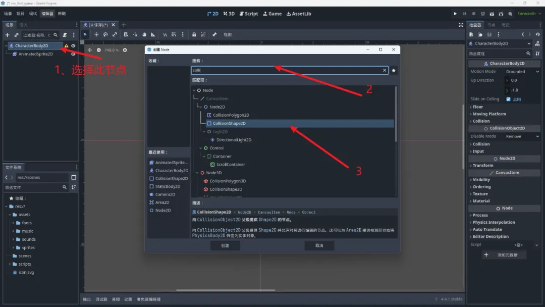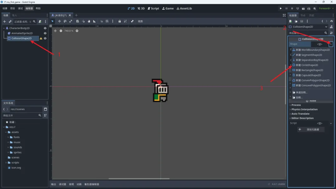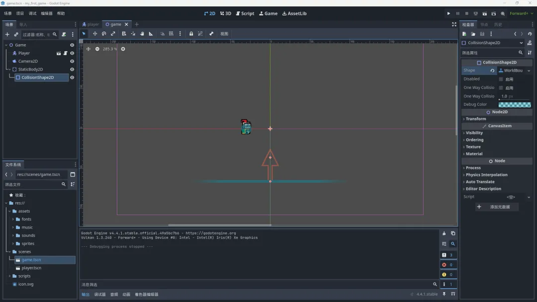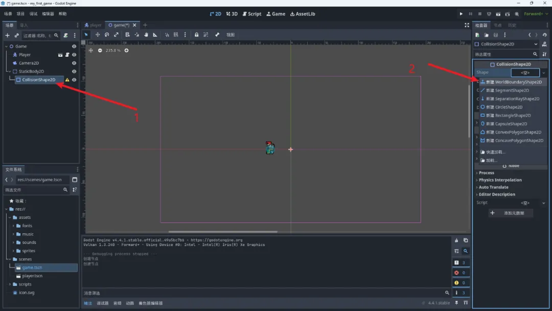 9、为玩家添加碰撞体积节点CollisionShape2D