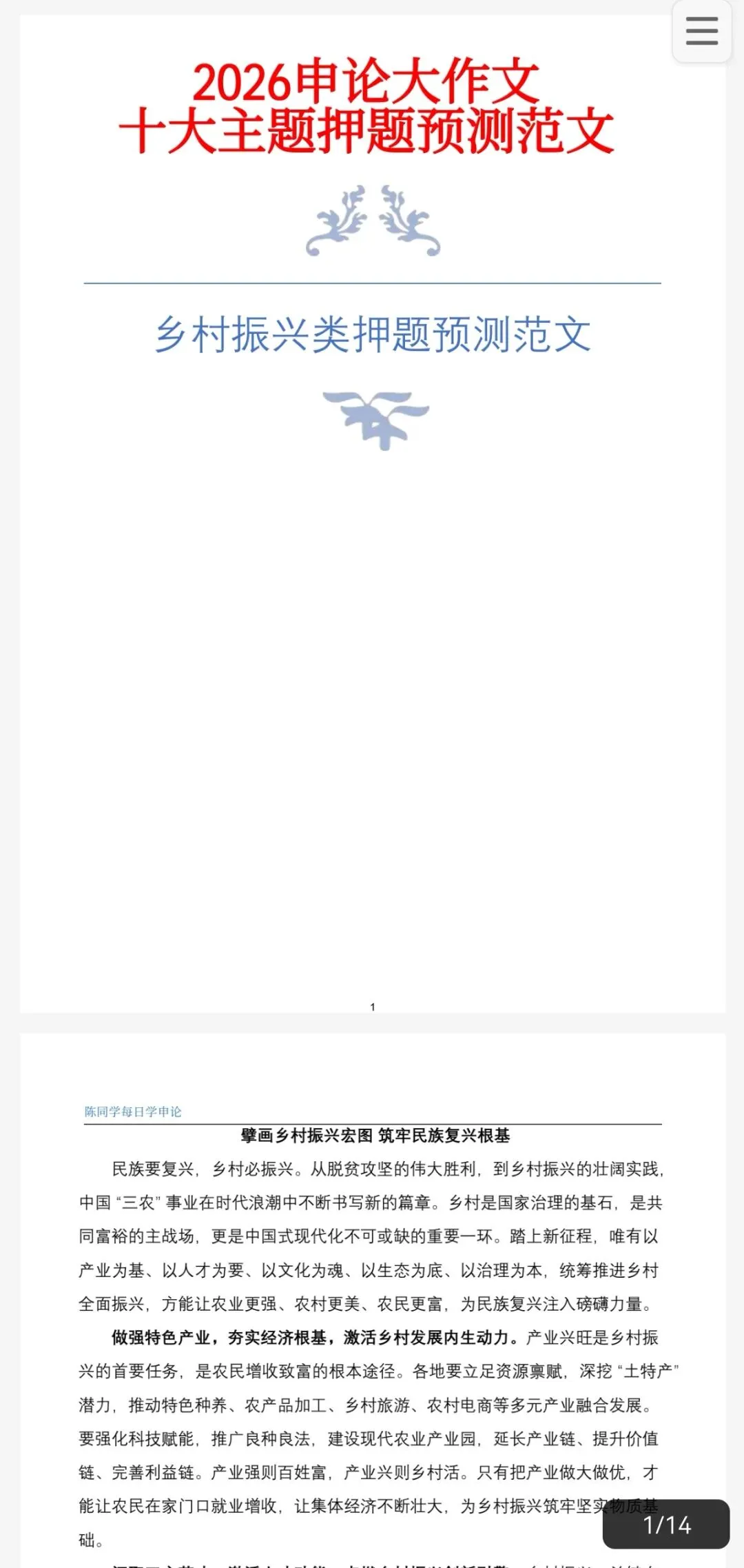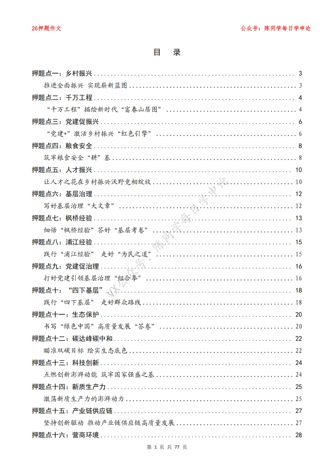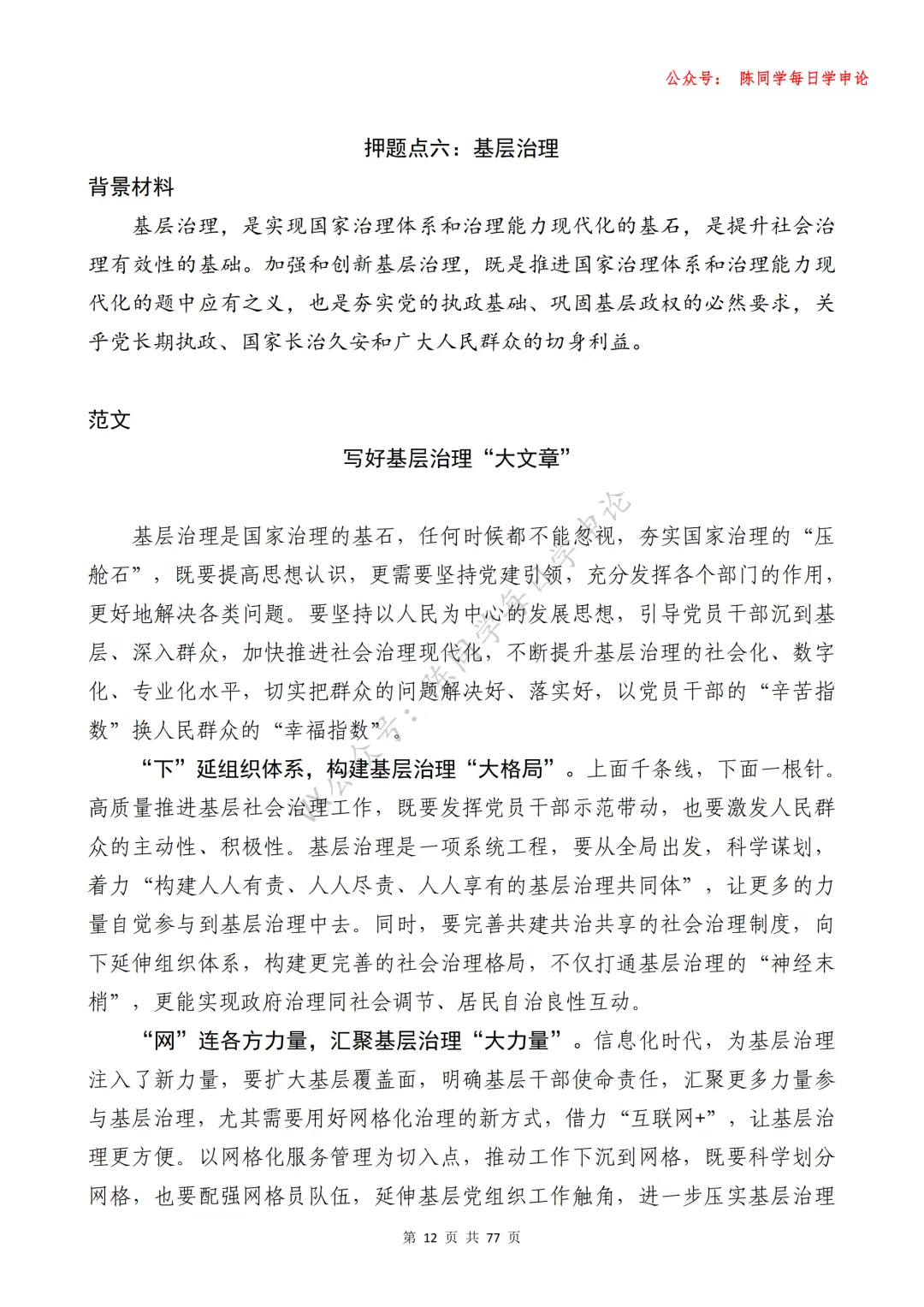 涵盖“陈同学每日学申论”公众号所有“申论范文“打包合集”(动态更新),PDF电子档发货,一次购买包永久更新。