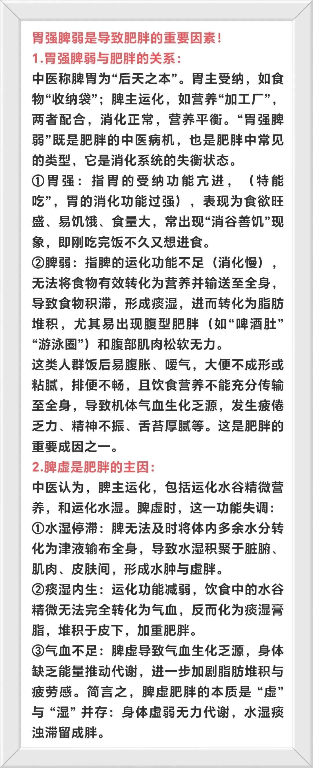 具体可概括为:肝郁气滞,痰瘀互结;脾虚不运,痰湿内停(最常见);肾虚气化不利,水湿潴留;久则虚实夹杂(如脾虚夹痰、肾虚夹瘀),加重肥胖及并发症风险。