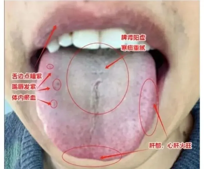 典型表现为皮肤粗糙,肌肤甲错,眼周暗黑,身体局部刺痛,记忆力下降,女性多见痛经、闭经,或经色紫黑有血块,舌质暗紫或有瘀点瘀斑,脉细涩或结代。性格内郁,烦躁健忘。