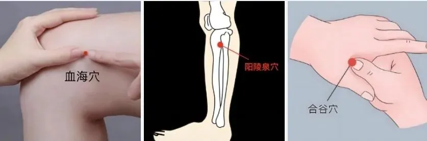 ①主穴:脾俞、胃俞、肾俞、曲池、手三里、内关、合谷、阳陵泉、血海、足三里、三阴交;