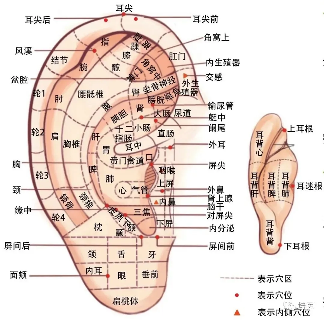 ①主穴:内分泌、三焦、神门、肾上腺、皮质下、饥点。