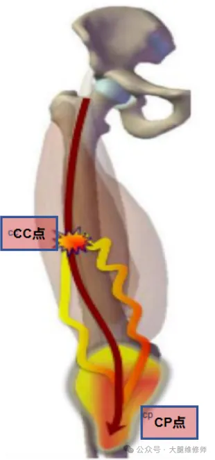 ② 力的向量交汇点:CC点是单关节与双关节纤维汇聚后,力的向量交汇之处。力的方向与大小在深筋膜上的特定位置汇聚,形成唯一的力平衡中心。它是肌纤维所产生的矢量的叠加点,据此定义了CC点。