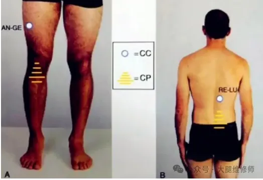 举例:AN-GE(前-膝,膝伸展)所产生的疼痛位于膝前部;RE-LU(后-腰,腰椎伸展)所产生的疼痛位于骶骨上方等。