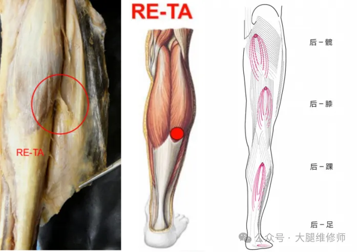 但膝关节向后的运动并不是由后-膝(RE-GE)这一个肌筋膜单元孤立完成的,而是膝节段内六个肌筋膜单元相互协调与拮抗的共同结果。