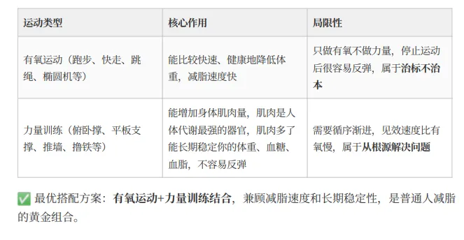 🌟提示:很多人觉得力量训练就要练出大块肌肉,完全不需要,哪怕你的肌肉只增长了1斤,都代表你的基础代谢在提升,对减脂控三高就有帮助,普通人不需要追求大块肌肉,只要动起来长肌肉就是好事。