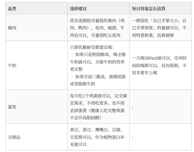 🌟实操参考:早上1个鸡蛋+1袋牛奶,中午吃手掌大的瘦肉,晚上喝牛奶或者吃豆制品,这样一天基本就能吃够量。