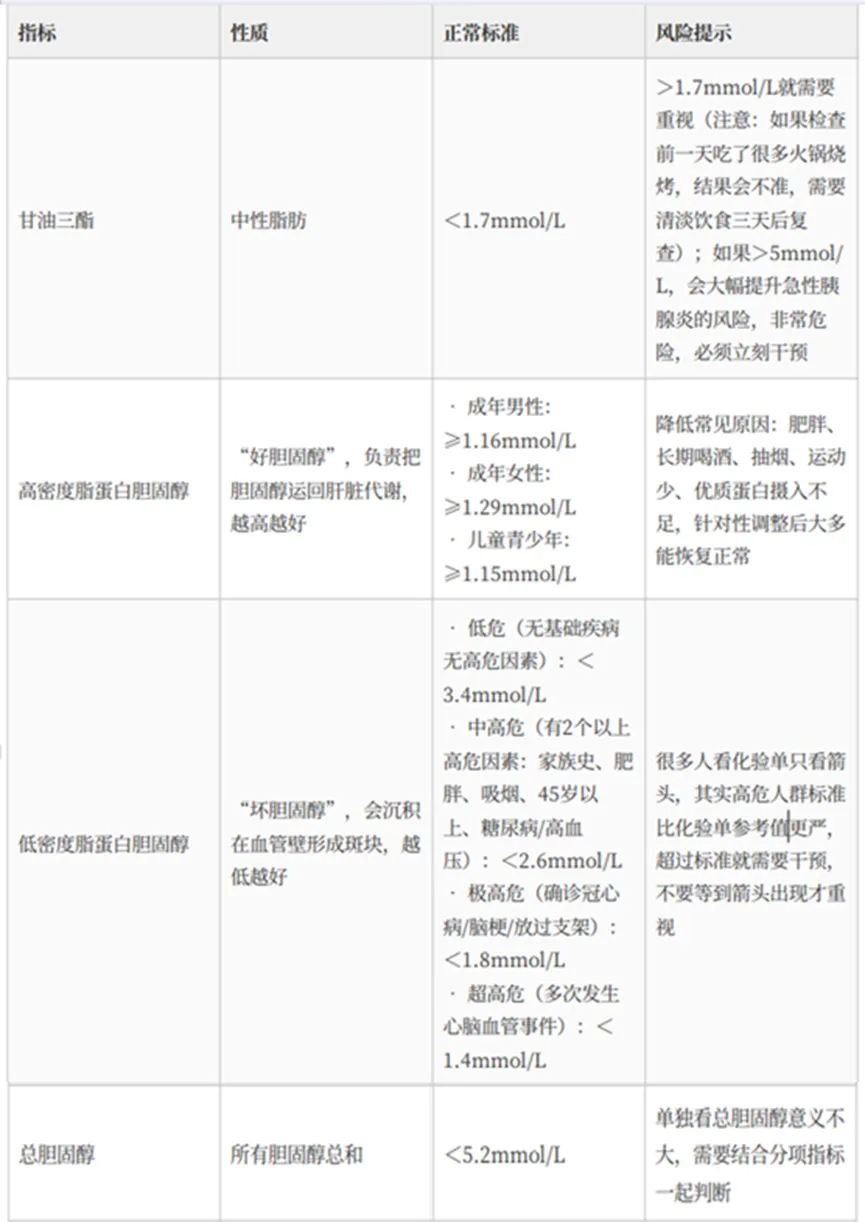 🌟特殊说明:如果你有早发心脑血管病家族史(也就是你的直系亲属里,男性55岁之前、女性65岁之前确诊过冠心病、脑梗),属于高危人群,控制标准会更严格,需要把低密度降到2.6mmol/L以下,要遵医嘱调整。
