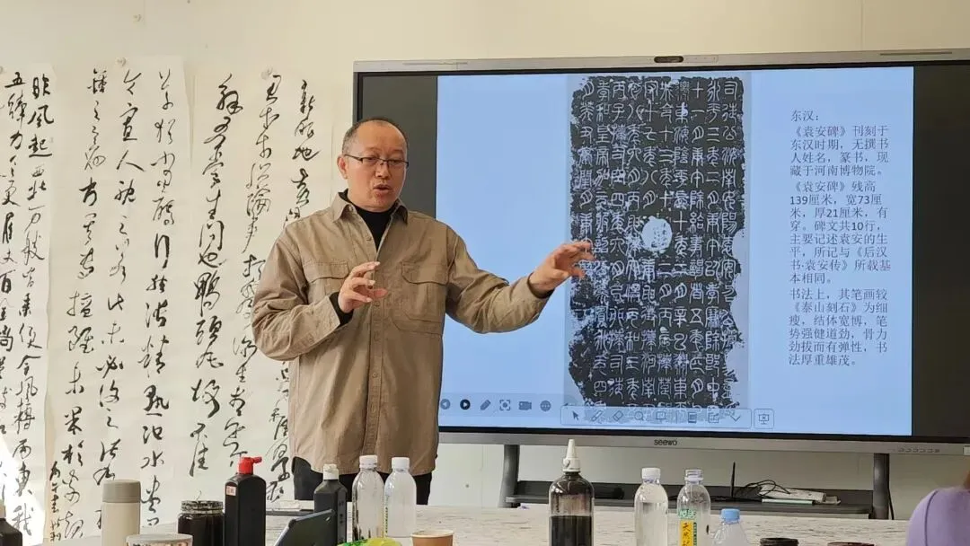 进入秦代,《泰山刻石》成为小篆的典范。它刻于秦始皇统一六国后巡游泰山之时,由李斯撰文并书丹。字体为小篆,笔画匀整如铁线,结构严谨对称,风格庄重肃穆,充分体现了秦代“书同文”的政治理想。与东汉《袁安碑》(笔画细瘦劲拔、结体宽博、骨力雄茂,兼具古朴与灵动之姿)相比,《泰山刻石》笔画更显粗壮,结体更为紧凑。