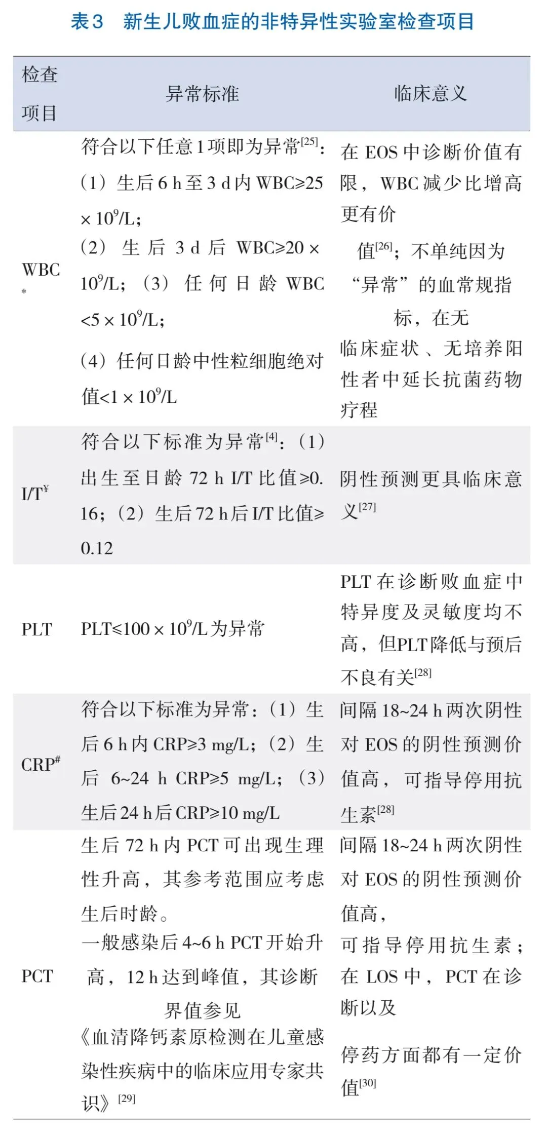 单一血液非特异性检查在EOS中的诊断价值不高,不作为抗菌药物使用依据,但在指导LOS的诊疗及EOS抗菌药物停用方面仍有价值。