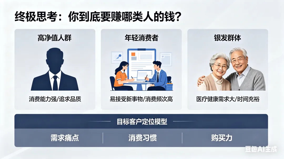 要答清:客户画像(年龄/收入/需求)、购买理由(解决什么问题)、不买的原因(贵/麻烦/不需要)?