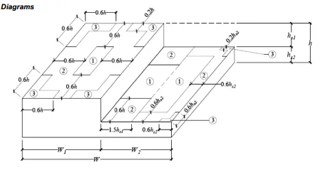 阶梯式屋顶(高低跨):Stepped roofs; see Figure 30.3-3