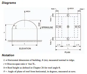 拱形屋面:Arched roofs; see Figure 30.3-8