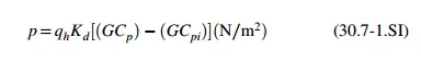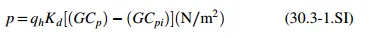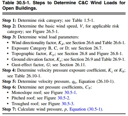 这一部分不展开,其中图标figure30.5-1是单坡自由屋顶,其中图标figure30.5-2是双坡自由屋顶,其中图标figure30.5-3是槽型自由屋顶,计算公式也与part1和part2不同,使用net pressure coefficient:CN,需要同时考虑屋顶上下表面的风压贡献净值: